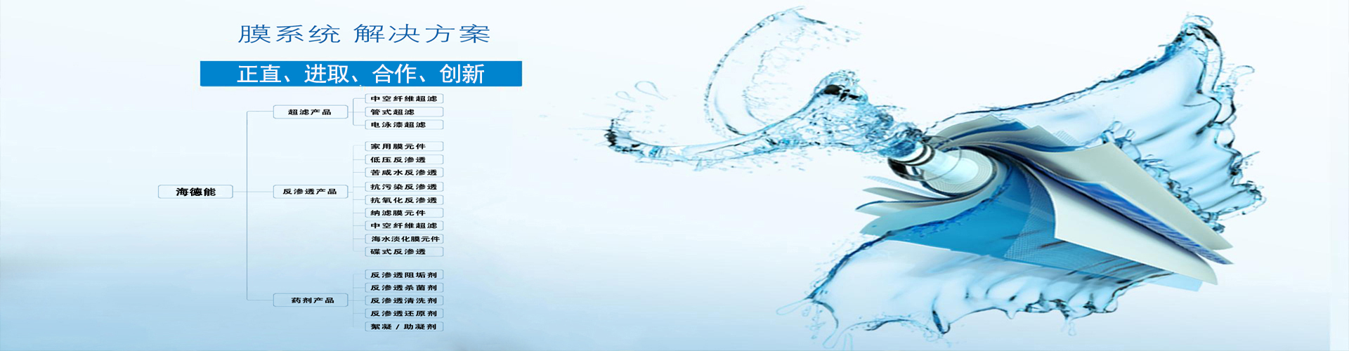 海德能專注于納米膜材質的研發、中空纖維膜材質研發、聚酰胺復合材質研發、膜工藝技術應用、膜產品技術研究應用及工藝設計。目前本公司與國內外數家知名的水處理公司和設計院形成緊密合作。
